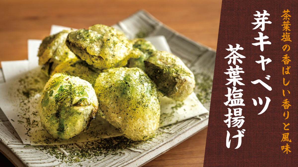 旬の芽キャベツを、お茶と昆布出汁に漬け込み、サックサクの衣でまとわせました♪