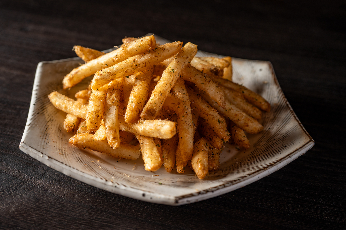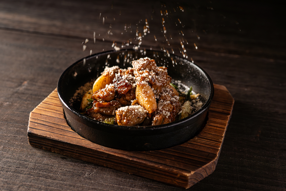 土俵に上がる際に撒く、清めの塩をイメージしながらグラナパダーノチーズを豪快に振りかけて召し上がって下さい!