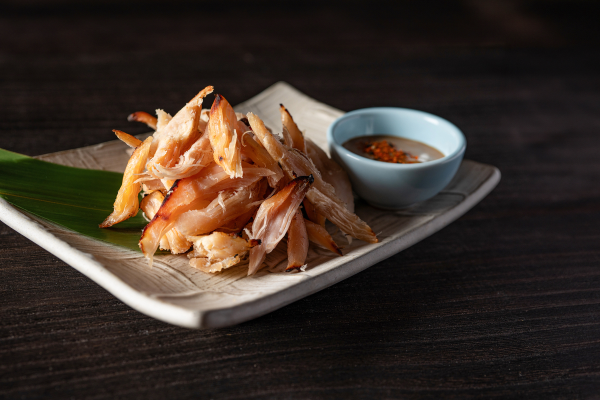 \地鶏スルメの炭火炙り 力士味噌マヨネーズ添え/