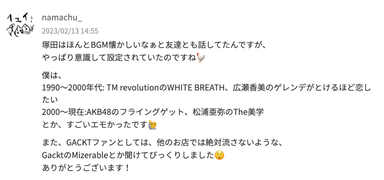 ご来店の際は、ぜひBGMにも注目してみてくださいね♫