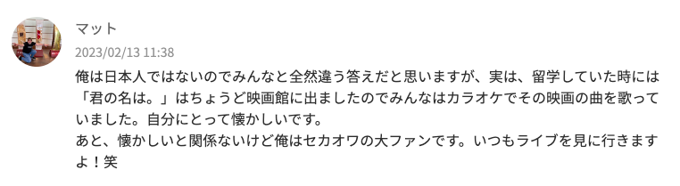 みなさんたくさんのコメントありがとうございました!
