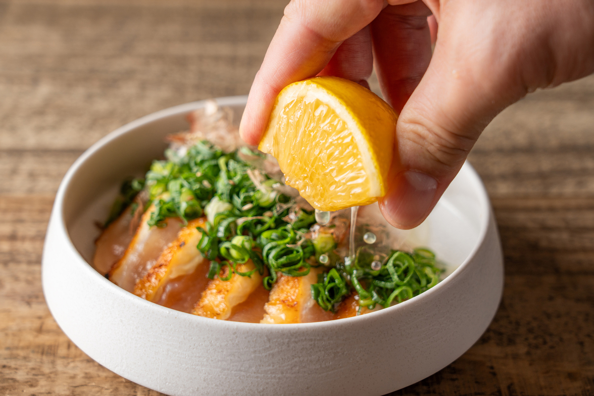 食べる直前で搾る初夏限定の『生搾りグレープフルーツポン酢』で爽やかな香りと味わいをお楽しみください。