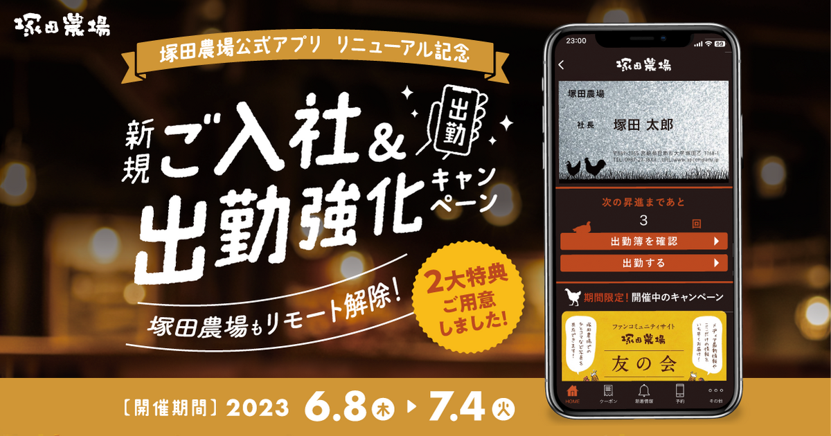 ご来店時の出勤や、最新情報をチェックしていただいてる塚田農場公式アプリがこの度リニューアルいたしました👏