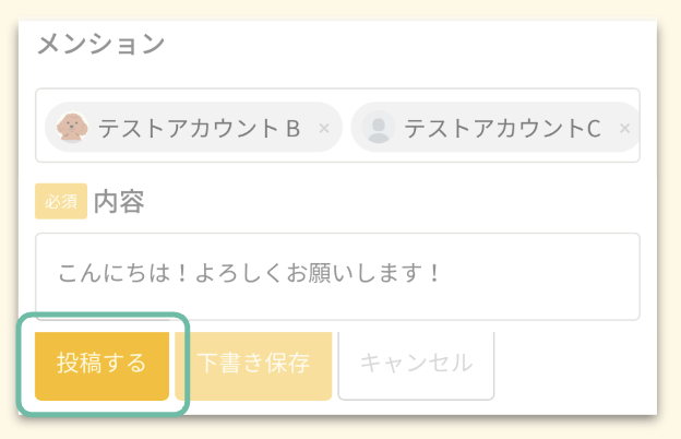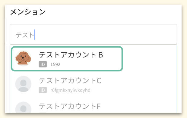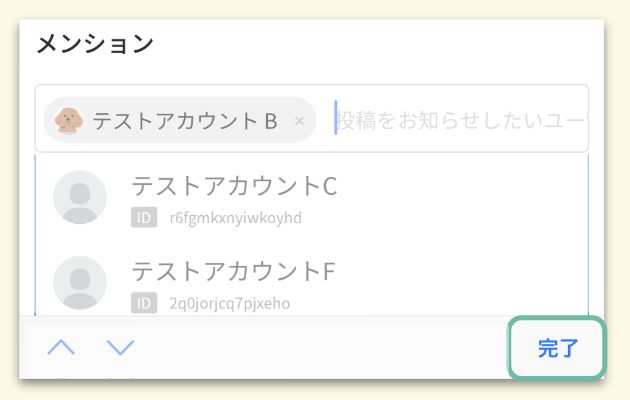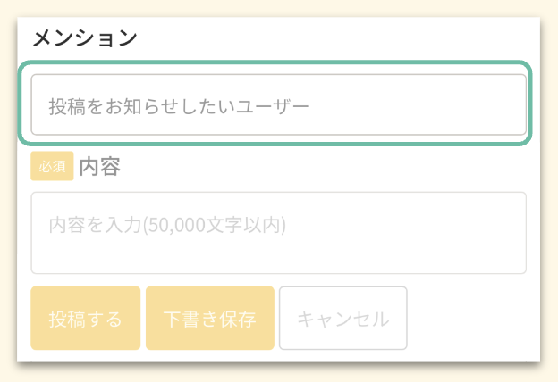 投稿やコメントなどをするときに、メンション欄にメンションしたいユーザーの 表示名を入力します。