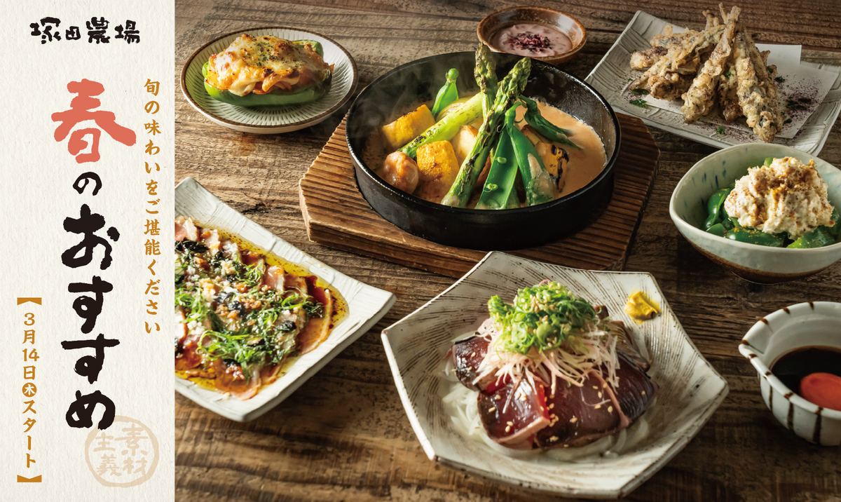本日、3月14日(木)より、「宮崎県日南市 塚田農場」、「鹿児島県霧島市 塚田農場」にて、春のおすすめメニューがスタートします!