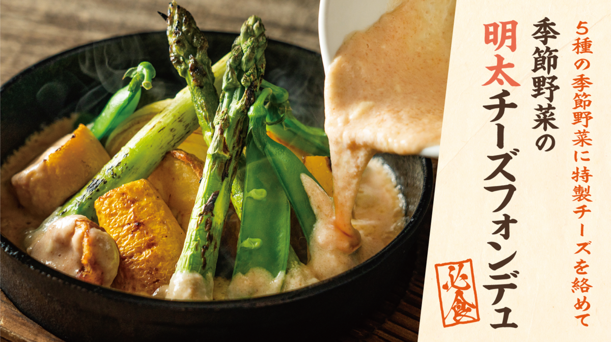 季節野菜の明太チーズフォンデュ、美味しそ〜🤤来週、名古屋で食べます☺