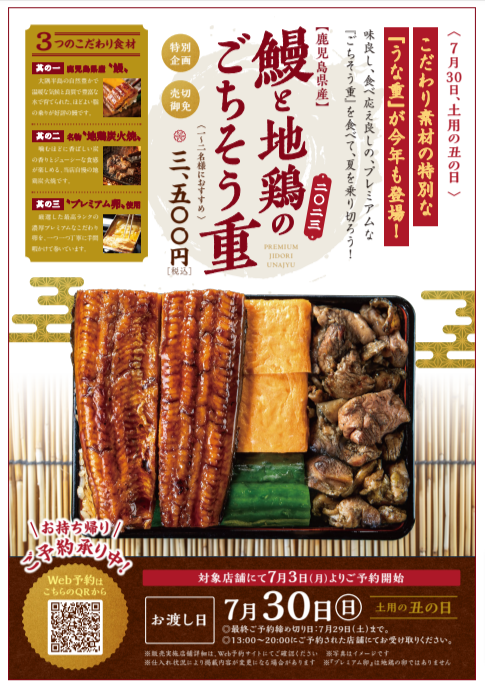 今年もやります!土用の丑の日「鰻と地鶏のごちそう重」!