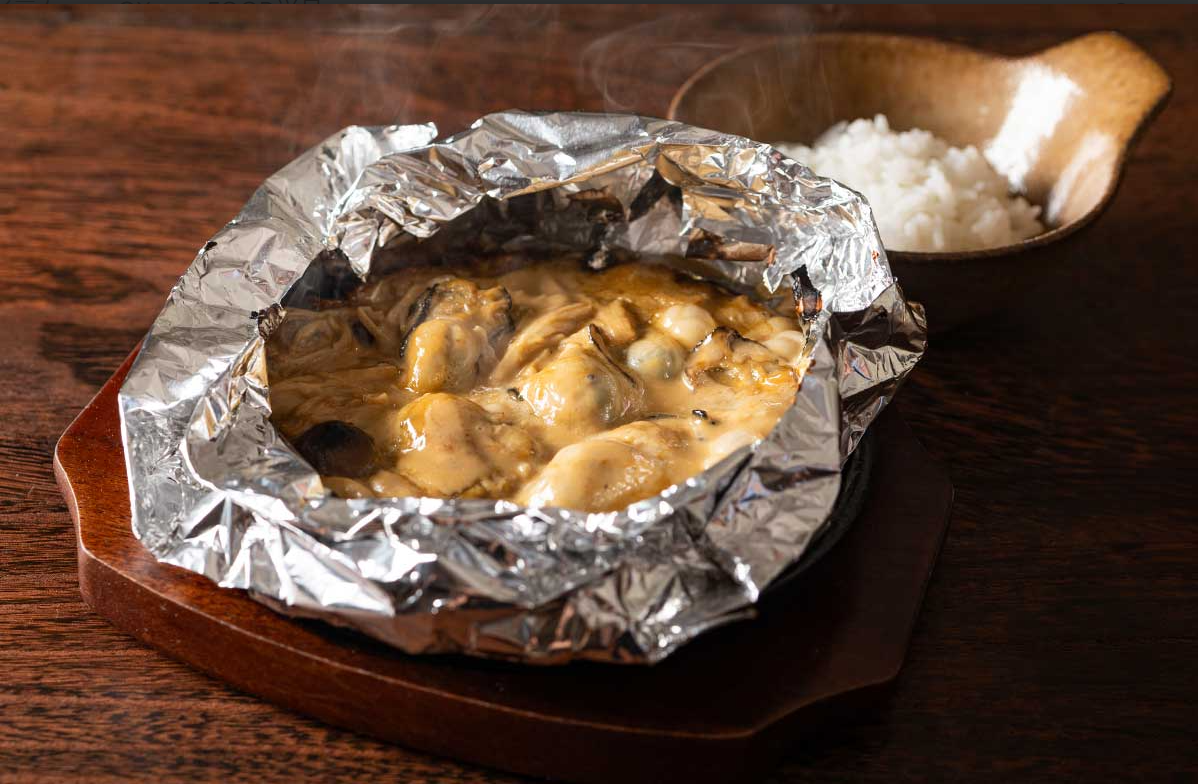 広島県産の真牡蠣を特製のイカわたソースをたっぷりつけて!