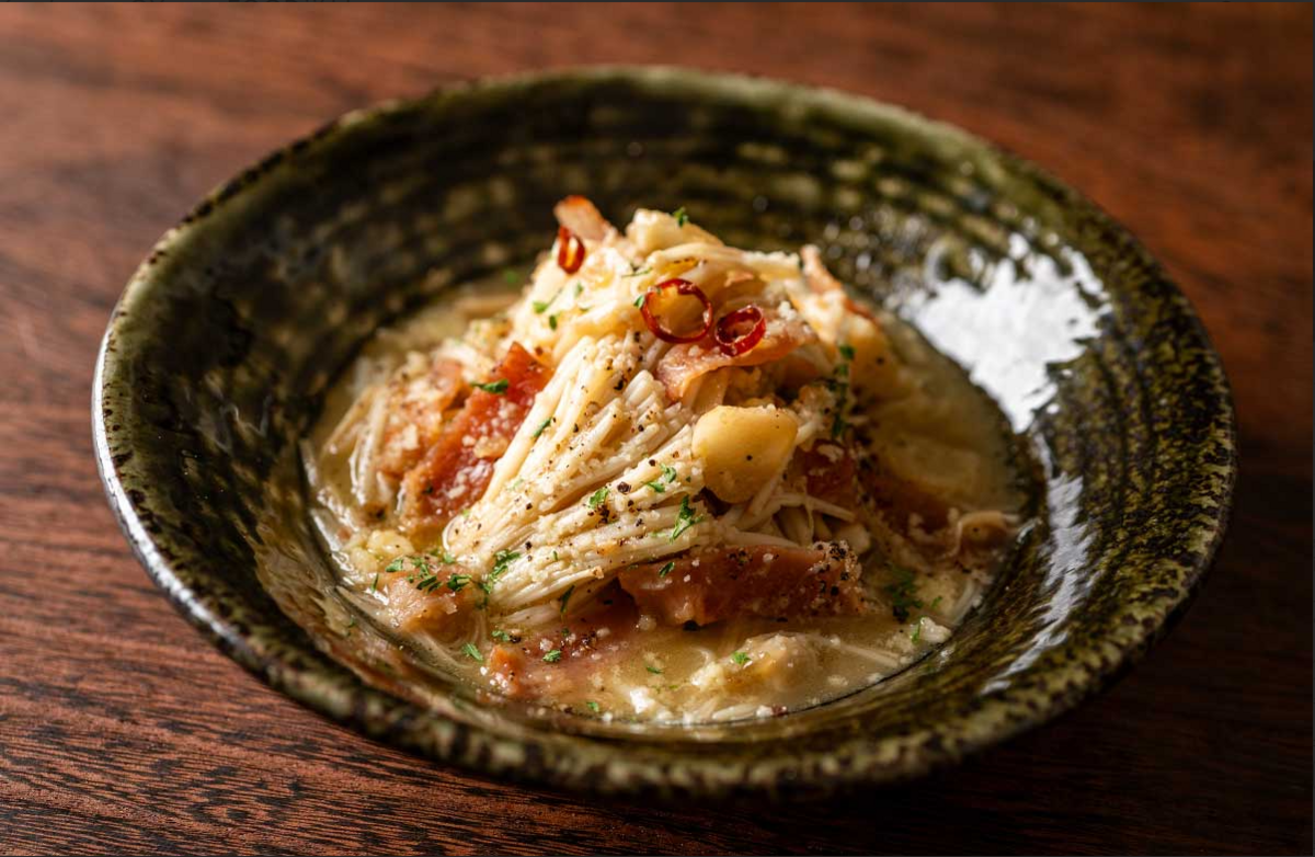 約30㎝の長いえのきがパスタみたいに食べられるヘルシーなメニュー!