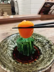 好きな瞬間 塚田で好きな瞬間の一枚、ニラ釜玉の黄身を箸で掴んで持ち上げているとき!!塚田農場の卵は濃厚でとっても美味しい💕