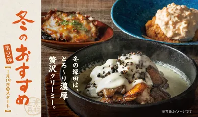 ★新登場★冬のおすすめメニューをご紹介 みなさんこんにちは!明日1/19に新登場する冬のおすすめメニュー4品ご紹介〜★ ▼冬の地鶏炭火焼とろ〜り5種のチーズと生ペッパー地鶏炭火焼に5種類のチーズを使った特製ソースをたっぷりかけた冬限定メニュー⛄️香ばしい地鶏とコク深いチーズは相性抜群◎チーズが余ったら、追加でバゲットがご注文いた