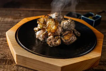 新「名物地鶏炭火焼」美味しさの裏側 塚田農場を代表する、創業当時から愛される看板メニュー『地鶏炭火焼』「山田工業所」×「釜浅商店」×「塚田農場」、3社の技術を集結した唯一無二の鉄板を共同開発し、焼き方も探究することで今まで以上に熱々、ふっくらジューシーに!さらにおいしくなりました! \おいしくなった3つのポイント